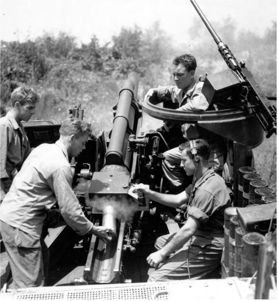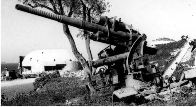 ITALIAN ANTIAIRCRAFT GUN captured by the British in the western desert of Egypt. Before the United States entered the war, American technicians worked closely with the British in the Middle East to obtain information on German and Italian weapons, equipment, and methods of warfare. (Italian Ansaldo antiaircraft gun, 75-mm.)