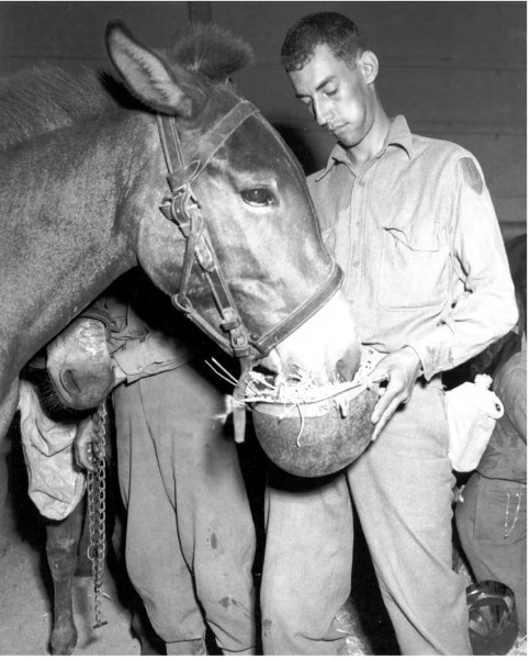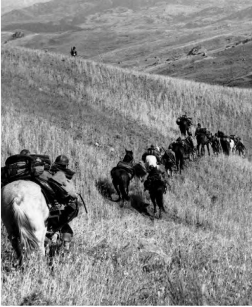 GERMAN PRISONERS and their equipment captured on the Po plain. For the first time in the Italian campaign, the enemy was retreating over terrain suitable for swift pursuit. Since the Germans lacked vehicles and gasoline, they had to rely to a great extent on horse-drawn transportation. They retreated across an open valley having a fine network of roads for mechanized forces and were forced to cross wide rivers by ferries and ponton bridges under constant attack by Allied air forces. The retreat became a rout.