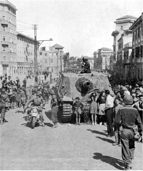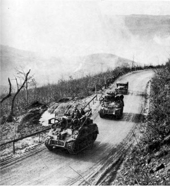 TANK DESTROYER speeding along Highway 1 through the town of Querceta during the spring offensive. The main effort of the army was along Highways 64 and 65.