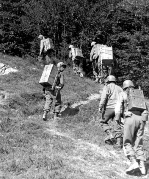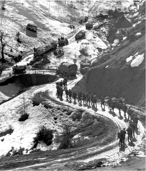 SOLDIERS MOVING UP into the line a few days before the start of the attack toward the Po Valley.