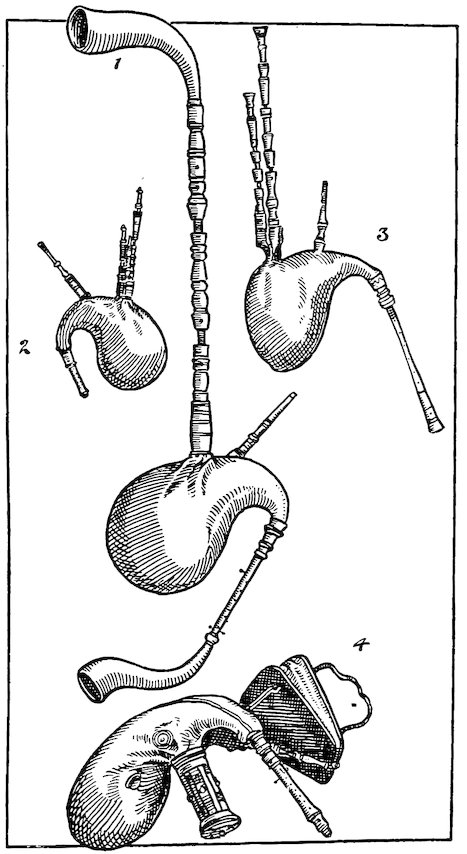 | The “Encyclopædia” definition—The simple reed—Early forms—Simple bagpipes—The chorus—The volynka—Continental pipes—British pipes—The Northumbrian—The Irish—The Highland—Tuning—Modern pipes—Prize pipes. | |