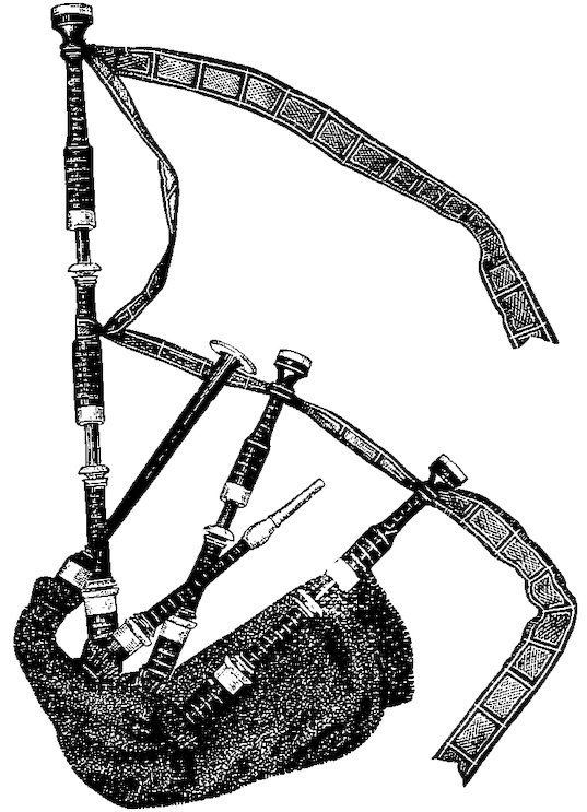 | Dr. Johnson—Inspiration of Scottish music—Professor Blackie—Highland music simple—Scottish airs once Highland—Age of Highland music—Capability of the bagpipe—How it has suffered—Peculiarities of the pibroch—Pipe music not fitted for inside—How it troubled the pressman—Chevalier Neukomm—Professor Blackie again—A Chicago jury’s opinion—An ode to the pipes. | |