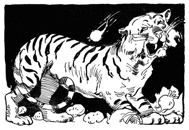 As for the Hungry Tiger, he never drops off to sleep without thanking his stars he is not a kitten, and if at times he looks a little hollow-eyed and wan, he is on the whole happier than ever, for he has learned that it is better to have a stomach-ache than a heart-ache and the heart-aches he had in Rash, missing his friends, cured him forever of the desire to eat a live man.