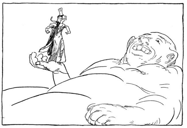 "You'll be sorry for this," panted Fizzenpop as the Pasha's pudgy figure disappeared down the pink passageway, and between anger and anxiety the Grand Vizier of Rash began to hop up and down like a jumping-jack.