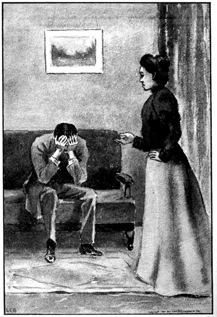 “He had found her asleep on the couch, where she had thrown herself from sheer fatigue, and for a moment had stood looking down upon her 42childish, beautiful face, while something like pity did for an instant stir his stony heart. But only for an instant, for when he remembered her words, ‘I do not love him, and never expect to,’ he hardened against her at once, and the gleam in his eye was the gleam of a mad man as he touched her arm and bade her rouse herself.