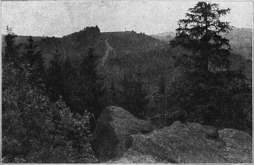 Ich starre ins Weite. Waldwelle hebt sich über Waldwelle. Waldkuppe reiht sich an Waldkuppe. Und da packt sie mich doch, die Sehnsucht nach der weiten Welt. Ich sträube mich vergebens. Ich bin nicht wert, ein Verkünder heimischer Schönheit zu sein. Hinter den Waldbergen gegen Süden schaue ich ferne Schneehäupter und sehe Pinien und Zypressen an blauen Seegestaden.