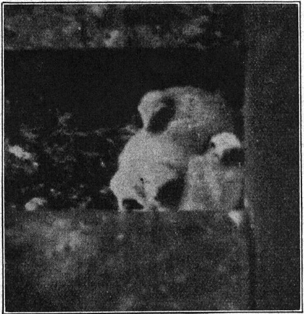 Gedacht – getan! Am 8. Juni ging ich zum ersten Male mit meiner Kamera an die Arbeit. Beim Anschleichen konnte ich feststellen, daß Frau Turmfalk[91] auf dem Neste stand und sich langsam im Kreise drehte, was jedenfalls eine Lagenveränderung der Eier zur Folge hatte. Nach Abflug der Alten verriet mir der Spiegel, daß sich sonst nichts besonderes ereignet hatte: Keines der Jungen war ausgeschlüpft. Trotzdem wollte ich schnell noch eine Aufnahme machen, aber mein Apparat war ein wenig zu groß., so daß ich ihn nicht durch die Spalte zwischen Säule und Mauer in eine geeignete Stellung bringen konnte. Ich tröstete mich mit der Hoffnung, daß es vielleicht noch ein paar Tage dauern würde, ehe die Jungen auskämen.