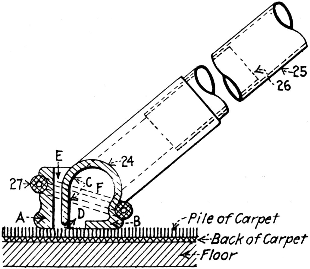 There is another type of mechanical cleaner manufactured by the Hoover Suction Sweeper Company which is provided with a mechanically-operated brush for loosening the dirt from the carpet. The dust is then conveyed through a single-stage fan to a dust bag. The cleaner does not depend on the vacuum to loosen the dirt and will do quite effective carpet cleaning with a small expenditure of power. Owing to the small suction produced, it is of little value for cleaning anything but carpets.