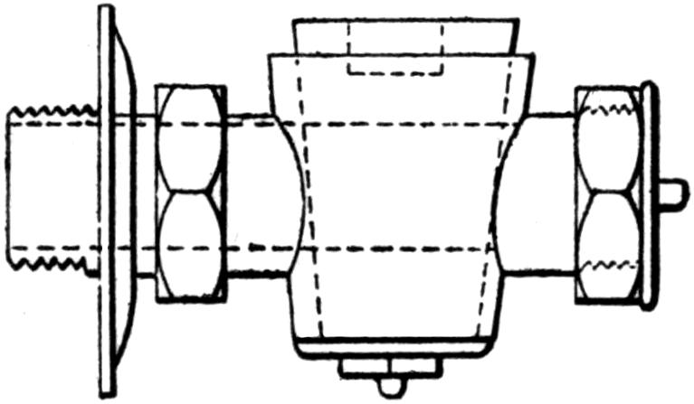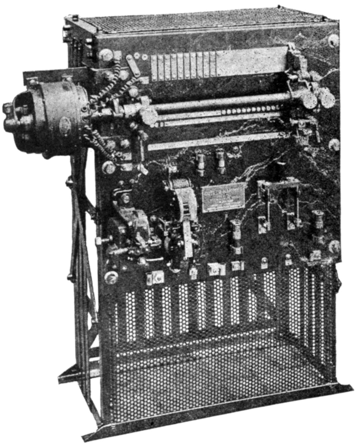 33a. Tablet. Furnish and place where shown, a slate tablet not less than ³⁄₄ in. thick, supported by a substantial angle bar frame, so placed that there will be a space of not less than 4 in. between the wall and back of resistance. Mount on the tablet one double-pole, 250-volt knife switch, with two 250-volt enclosed fuses and one starting rheostat, as specified hereinbefore. The connections shall be on the back of the tablet. The space between the column and the tablet shall be enclosed[221] with a removable diamond-mesh grill of No. 10 iron wire in channel frame.