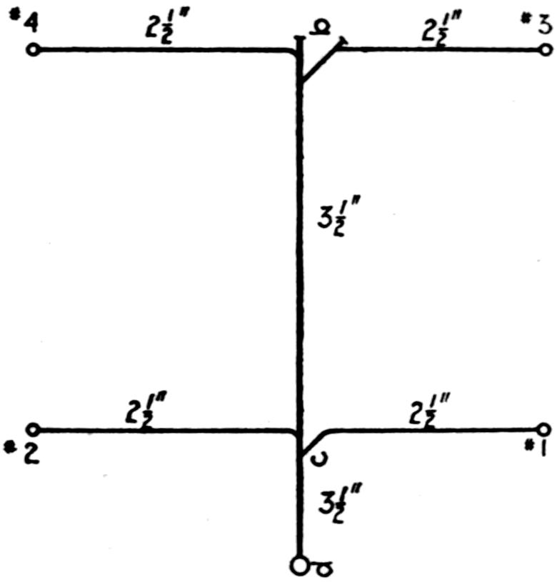 75. To test the capacity of plant, one hose line 100 ft. long shall be attached to inlet farthest from the separator, with standard vacometer with ¹⁄₂-in. opening in end of hose. Hose lines shall be attached to other outlets, each with 50-ft. hose and vacometer in end of hose, .... vacometers having ¹⁄₂-in. opening and .... vacometers having ⁷⁄₈-in. opening. Under these conditions 4 in. mercury must be maintained in vacometer at end of 100 ft. of hose.