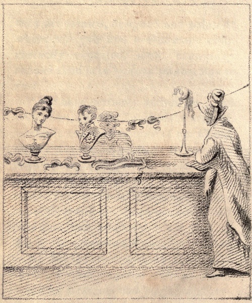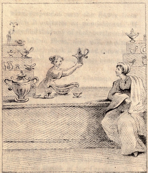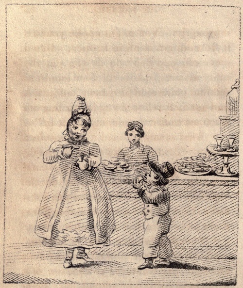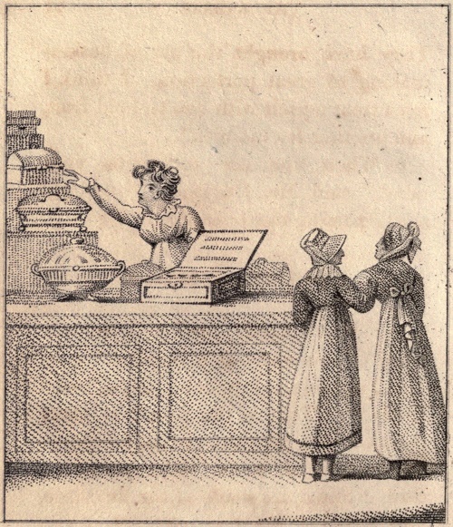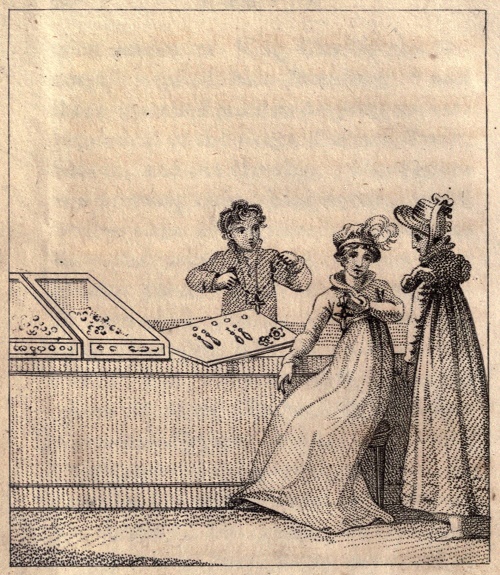 "My dear boy," replied Mr. Durnford, "the term Bazaar is given by the Turks and Persians to a kind of Market or Exchange, some of which are extremely magnificent; that of Ispahan, in Persia, surpasses all the other European exchanges, and yet that of Taurus exceeds it in size. There is the old and the new Bazaar at Constantinople, the former is chiefly for arms, and the latter for different articles belonging to goldsmiths, jewellers, furriers, and various other manufactures. [Pg 10] Our Bazaar in Soho-square, was founded by Mr. Trotter, on premises originally occupied by the store-keeper general, consisting of several rooms which are conveniently fitted up with handsome mahogany counters, extending not only round the sides, but in the lower and upper apartments, forming a parallelogram in the middle. These counters, having at proper distances flaps or falling doors, are in contiguity with each other, but are respectively distinguished by a small groove at a distance of every four feet of counter, the pannels of which are numbered with conspicuous figures, and these are let upon moderate terms to females who can bring forward sufficient testimonies of their moral respectability."