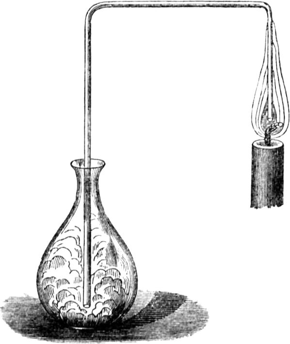 Wie wir bei Untersuchung der Verbrennungsprodukte unserer Kerze bereits das aufgefundene Wasser in seine Elemente zerlegten, so müssen wir jetzt auch die aus der Kerze entwickelte Kohlensäure auf ihre Bestandteile prüfen, und einige Experimente werden uns auch hier zum Ziele führen.