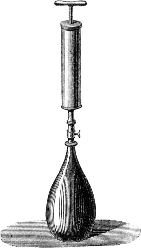 Doch genug für jetzt von dem Druck und dem Gewichte der Luft, um noch eine andere wichtige Eigenschaft an ihr kennen zu lernen. Ihr saht soeben bei der Knallbüchse, wie ich den zweiten Pfropfen ½ bis ¾ Zoll weit hineintreiben konnte, ehe der vordere hinausflog, daß also die eingeschlossene Luft bis zu einem gewissen Punkte dem Druck nachgab; ebenso[151] saht Ihr, wie sich die Luft in der kupfernen Flasche mittelst der Pumpe so bedeutend zusammenpressen ließ. Nun, das hängt von einer wunderbaren Eigenschaft der Luft ab, nämlich von ihrer Elastizität. Ich werde Euch diese Eigenschaft der Luft möglichst gut zu veranschaulichen suchen. Eine Blase aus Gummihaut, wie ich sie hier habe, eignet sich vortrefflich dazu. Sie ist luftdicht, d. h. sie läßt weder Luft ein- noch austreten; aber sie kann sich ausdehnen und wieder zusammenziehen, so daß sie der darin eingeschlossenen Luft in jeder Weise nachgibt, und daher gleichsam als Maßstab ihrer Elastizität dienen kann. Ihr seht, die jetzt schlaffe Blase enthält nur wenig Luft. Ich binde sie fest zu, bringe sie unter die Glocke der Luftpumpe und pumpe aus dieser die Luft heraus, hebe also den Druck der letzteren auf die in der Blase befindliche Luft auf. Seht, wie sie jetzt fort und fort sich ausdehnt, weiter und immer weiter, bis sie nun den ganzen Innenraum der Glocke ausgefüllt hat. Und lasse ich nun die Luft wieder in die Glasglocke eindringen, seht da, so geht auch die Luft in der Blase wieder auf ihren ursprünglichen Umfang zurück. Dies zeigt uns deutlich die wunderbare Eigenschaft der Luft, welche man Elastizität nennt. Vermöge derselben ist sie in so hohem Grade befähigt, sich zusammendrücken zu lassen und sich auszudehnen, und gerade hierdurch ist sie ganz besonders zu ihrer wichtigen Rolle im Haushalte der Natur geeignet.