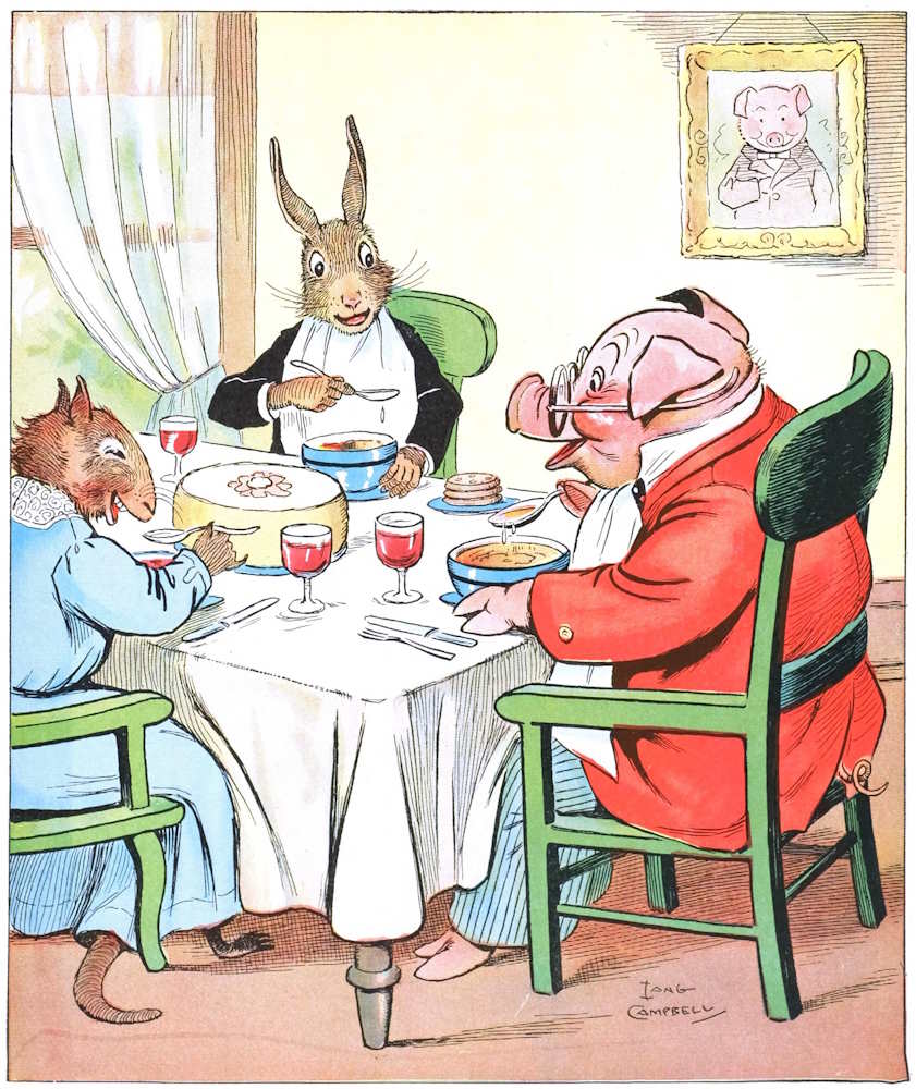 MR. TWISTY TAIL INVITED UNCLE WIGGILY TO DINNER.