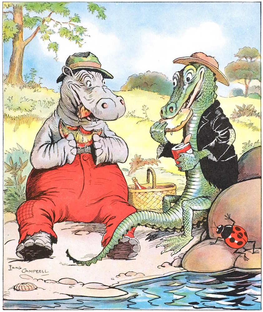 THE GATOR AND THE HIPPO HAVE LUNCH.