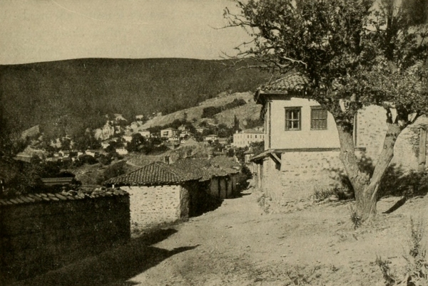 Vor uns dehnten sich im Tal von Hudova vor allem große Maulbeerpflanzungen aus; zwischen den Bäumen war Getreide gepflanzt. Die Maulbeeren waren zum Teil noch in Blüte. Unser Weg führte zwischen blühenden Rosen-, Brombeer- und Weißdornhecken und war so eng, die Hecken so dicht und üppig, daß bei der flotten Fahrt Zweige und Blüten den Pferden und mir ins Gesicht schlugen. Vom Wegrand dufteten die mannigfaltigsten Blüten, umsummt von einer Menge von Insekten. Vögel vieler Arten machten auf sie Jagd. Aus den dichten Gebüschen begann der Gesang zahlreicher Nachtigallen sich zu erheben, während allmählich der Abendsonnenschein sich durch das Tal[8] ergoß und fern hinter mir auf dem Wardarfluß sich spiegelte. Noch weiter westlich grenzte ein in zarten Farben verschwimmendes Hochgebirge, dessen Gipfel noch breite Schneefelder trugen, in schönen dachsteinähnlichen Formen die Ferne ab.