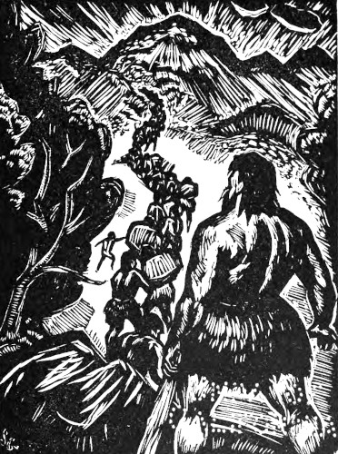 Leering at Yonyo with eyes that shone bestially in the half-light, Grumgra lifted his club yet a little higher, and took a step forward. But he was halted by an unexpected voice.