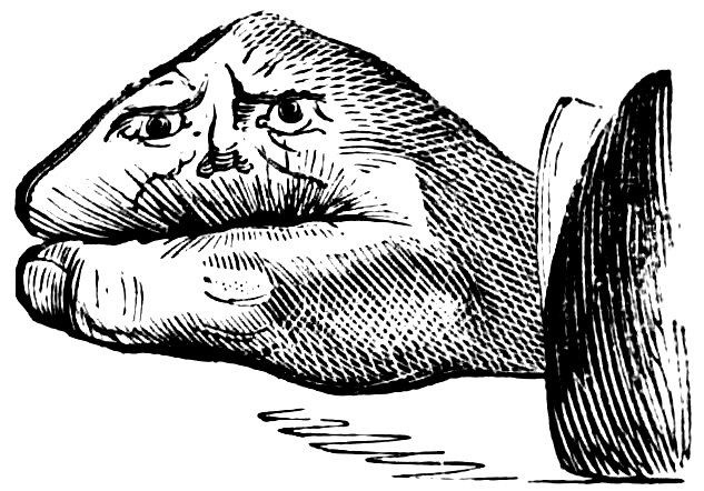 Some put on a black glove and make four chalk spots on the fingertip to represent eyes, nose, and mouth.