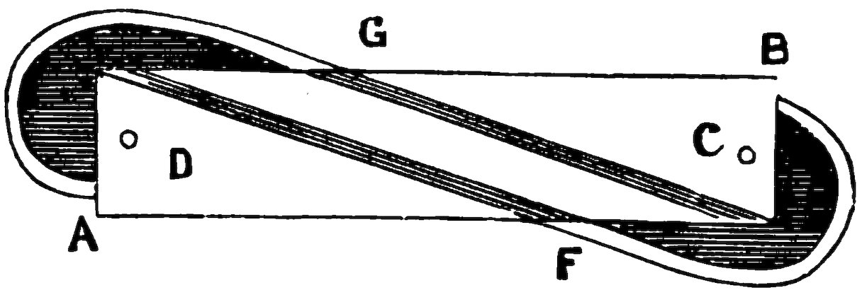 The success of the trick depends on their being exactly alike in size. Place a sixpence in the centre of one of the pieces at the place marked A, then fold it carefully over at the crease on the side marked B, and also again at the side marked C. When you have done this, turn down the end marked D upon the centre A and again fold over on E. You have thus formed a small parcel the shape of Fig. 8, with a sixpence in the middle. You must then put a shilling in the centre of the other piece of paper, and fold it up exactly the same 23size and shape as the first piece. When you have done this, paste the two parcels together at the back of the ends marked F in Fig. 8, and the sides will be so even that both will appear as one. You can then open the side of the paper containing the smaller coin, and show it to your audience, at the same time informing them that you are going to open a mint on a small plan, and coin a shilling from a sixpence. Dexterously turn over the side containing the shilling, and upon opening the paper, to the general astonishment, instead of a sixpence they will behold a shilling.