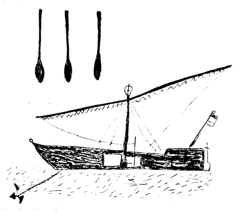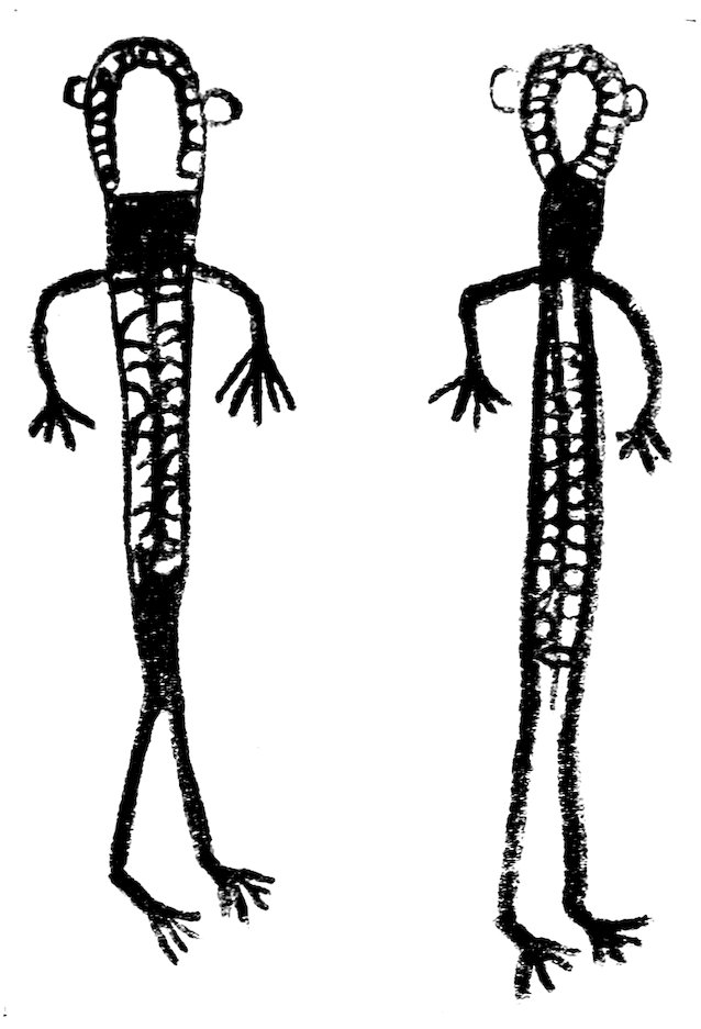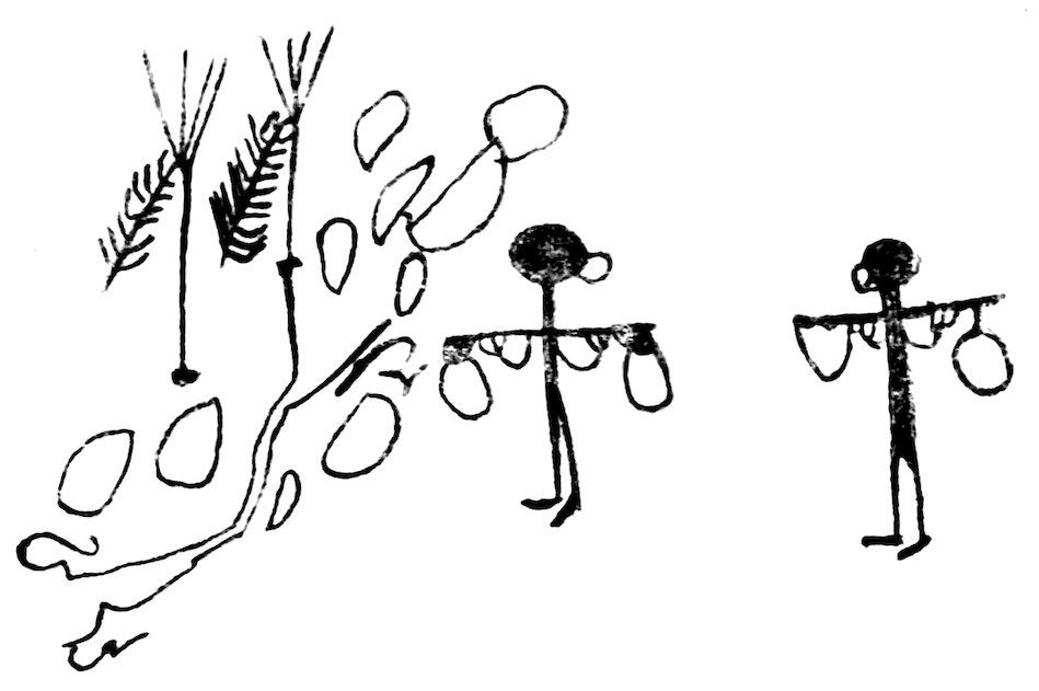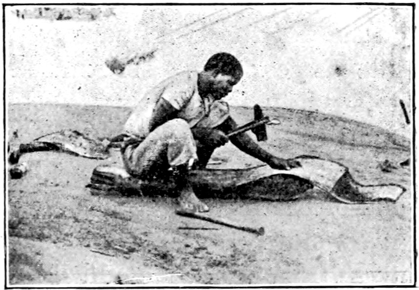 8. This is more intelligible if we remember the shape of the native razor, which is usually about five or six inches long, with the cutting end like a spatula and tapering back into a stalk-like handle, the end of which could easily be sharpened as an awl.