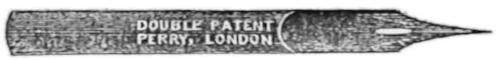 The Elastic Holder is so constructed as to impart an agreeable softness and flexibility to the Pen, rendering it so unconstrained in its action as not to fatigue the hand. This Holder facilitates the progress of the Pen over every description of paper. It may be had with the Perryian Pens, at an advance of Threepence per Card; or separately, at Threepence each. Each Holder is stamped with the words “Patent, Perry, London.”