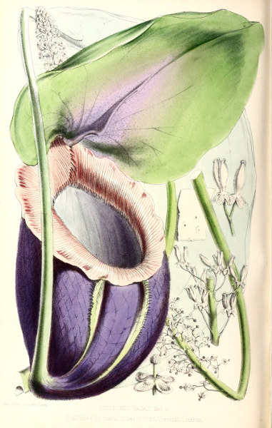 I must likewise draw attention to the exquisite manner in which the plates of the Nepenthes are coloured, and to the beauty of the engravings in general. They are admirably illustrative of the country, and do very great credit to the lithographers, Messrs. Day and Son, and to their excellent draughtsmen. I ought also to mention that the Nepenthes are drawn less than half the natural size, as it was found impracticable to introduce the full size without many folds, which would have speedily destroyed the beauty of the plates.