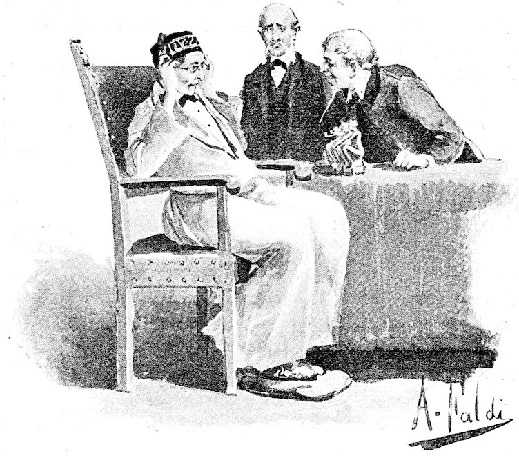 Making all these allowances, one finds some of Torelli’s and Ferrari’s plays fairly amusing in the reading, whatever they may be when well acted; but even so the reflection is forced upon one that some of them are lamentable comedies indeed. It is not that they lack spirit and vivacity, but one is astonished at the subjects chosen. That any man should write a play called The Duel, in which the principal incident is a duel, which really does come off, and in which a man is killed, and then call it a comedy, passes one’s comprehension. Not that the subject is made light of; there are comic characters and situations, it is true, but these are subsidiary, and the main treatment is dignified and even pathetic. Again, we have Torelli’s I Mariti,—no tragedy could cause one acuter misery than this drama of ill-assorted marriages and slowly-tortured hearts. La Verità, by the same author, would be a bright and amusing play, were it not for the cynical bitterness of the main idea running through it. The hero, a simple, honest young fellow from the country, gets into trouble by his outspokenness all through the first act or two; then, having found out that honesty does not pay, he takes to lying and flattery, and gets on in the world accordingly. Another example of the same tendency is Ferrari’s Suicidio.