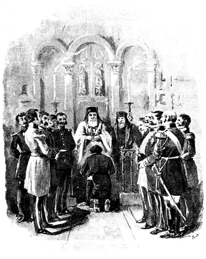 35. Mr. Chenapan has again made rather a muddle of his Russian. “Zvon pobièdy, razdavaïsia!” (“Bells of victory, ring out!”) is the opening line of one of Derzhàvin’s pompous, servile, and essentially jingoish odes on the victories of Catherine II.—Translator.
