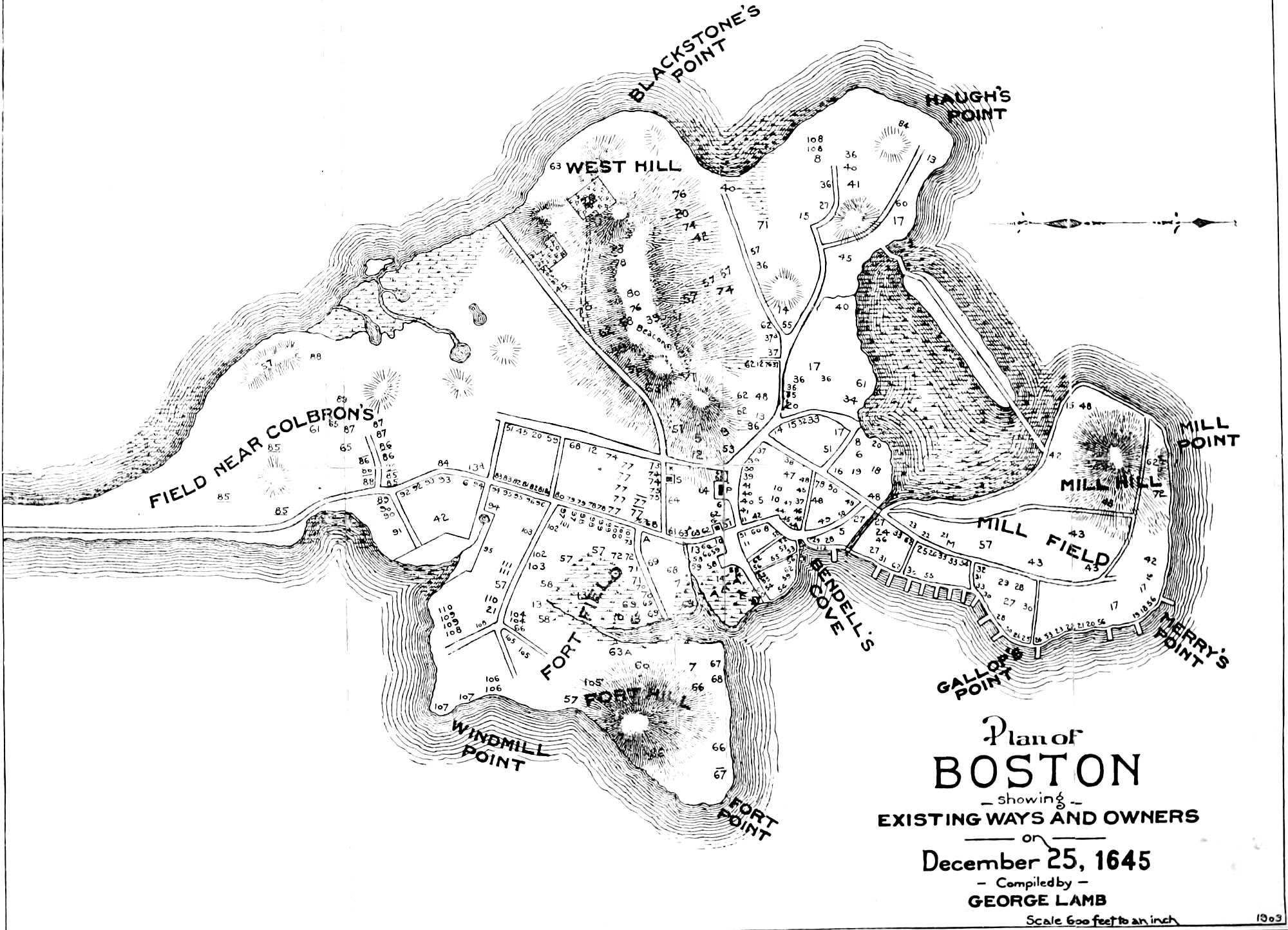 The plan dated December 25, 1645, while in the main correct, does not show all the transfers made during that year, as will be seen by consulting Suffolk Deeds, Lib. 1, as noted in the introduction to the Book of Possessions (Volume 2 of the Boston Records), the first 111 pages of which were written by William Aspinwall prior to the 10th month, 1645.