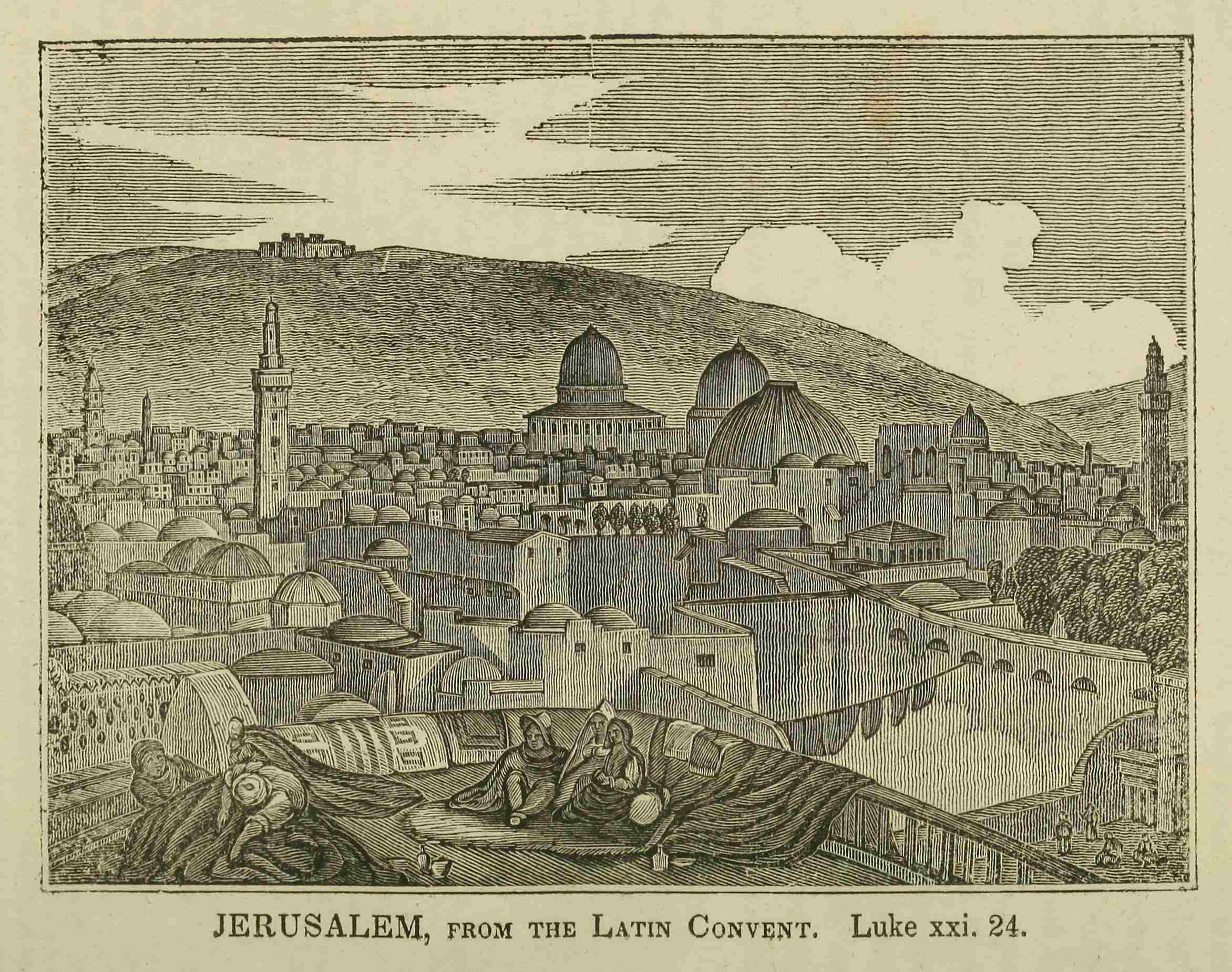 Paul was now received in Jerusalem by the brethren with great joy, and going, on the day after his arrival, to see James, now the principal apostle resident in the Holy city, communicated to him and all the elders a full account of all his various labors. Having heard his very interesting communications, they were moved with gratitude to God for this triumph of his grace; but knowing as they did, with what rumors against Paul these events had been connected by common fame, they desired to arrange his introduction to the temple in such a manner, as would most effectually silence these prejudicial stories. The plan proposed by them was, that he should, in the company of four Jews of the Christian faith, who had a vow on them, go through with all the usual forms of purification prescribed under such circumstances for a Jew, on returning from the daily impurities to which he was exposed by a residence among the Gentiles, to a participation in the holy services of solemn worship in the temple. The apostles and elders, however, in recommending this course, declared to him, that they believed that the Gentiles ought not to be bound to the performance of the Jewish rituals, but should be exempt from all restrictions, except such as had formerly been decided on, by the council of Jerusalem. Paul, always devout and exact in the observance of the institutions of his national religion, followed their advice accordingly, and went on quietly and unpretendingly in the regular performance of the prescribed ceremonies, waiting for the termination of the seven days of purification, when the offering should be made for himself, and one for each of his companions, after which, they were all to be admitted of course, to the full honors of Mosaic purity, and the religious privileges of conforming Jews. But these ritual observances were not destined to save him from the calamities to which the hatred of his enemies had devoted him. Near the close of the seven days allotted by the Mosaic ritual for the purification of a regenerated Israelite, some of the Asian Jews, who had known Paul in his missionary journeys through their own country, and who had come to Jerusalem, to attend the festival, seeing their old enemy in the midst of the temple, against whose worship they had understood him to have been preaching to the Gentiles,――instantly raised a great outcry, and fell upon him, dragging him along, and shouting to the multitude around, “Men of Israel! help! This is the man, that every where teaches all men against the people, and the law, and this place; and he has furthermore, brought Greeks into the temple, and has polluted this holy place.” It seems they had seen Trophimus, one of his Gentile companions from Ephesus, with him in the city, and imagined also that Paul had brought him into the temple, within the sanctuary, whose entrance was expressly forbidden to all Gentiles, who were never allowed to pass beyond the outermost court. The sanctuary or court of the Jews could not be crossed by an uncircumcised Gentile, and the transgression of the holy limit was punished with death. Within this holy court, the scene now described took place; and as the whole sanctuary was then crowded with Jews, who had come from all parts of the world to attend the festival in Jerusalem, the outcry raised against Paul immediately drew thronging thousands around him. Hearing the complaint that he was a renegade Jew, who, in other countries, had used his utmost endeavors to throw contempt on his own nation, and to bring their holy worship into disrepute, and yet had now the impudence to show himself in the sanctuary, which he had thus blasphemed,――and had, moreover, even profaned it by introducing into the sacred precincts one of those Gentiles for whose company he had forsaken the fellowship of Israel,――they all joined in the rush upon him, and dragged him out of the temple, the gates of which were immediately shut by the Levites on duty, lest in the riot that was expected to ensue, the consecrated pavement should be polluted with the blood of the renegade. Not only those in the temple, but also all those in the city, were called out by the disturbance, and came running together to join in the mob against the profaner of the sanctuary, and Paul now seemed in a fair way to win the bloody crown of martyrdom.