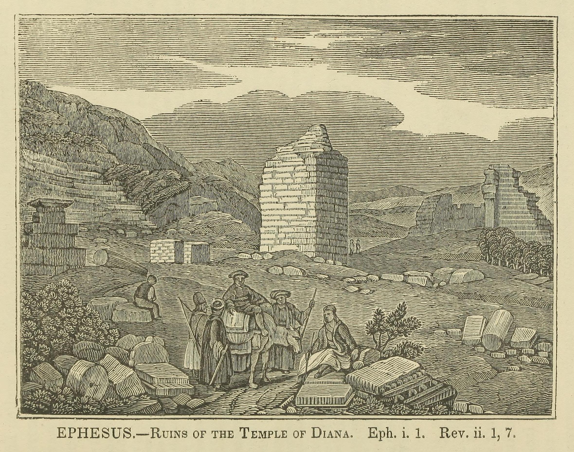After passing three months in Corinth, he took his departure from that city, on his pre-determined voyage to the east, the direction of which was somewhat changed by the information that the Jews of the place where he then was, were plotting some mischief against him, which he thought best to avoid by taking a different route from that before planned, which was a direct voyage to Syria. To escape the danger prepared for him by them, at his expected place of embarkation, he first turned northward by land, through Macedonia to Philippi, and thence sailed by the now familiar track over the Aegean to Troas. On this journey, he was accompanied by quite a retinue of apostolic assistants,――not only his faithful disciple and companion Timothy, but also Sosipater of Beroea, Aristarchus and Secundus of Thessalonica, Gaius, or Caius of Derbe, and Luke also, who now carries on the apostolic narrative in the first person, thus showing that he was himself a sharer in the adventures which he narrates. Besides these immediate companions, two brethren from Asia, Tychicus and Trophimus, took the direct route from Corinth to Troas, at which place they waited for the rest of the apostolic company, who took the circuitous route through Macedonia. The date of the departure of Paul is very exactly fixed by his companion Luke, who states that they left Philippi at the time of the passover, which was in the middle of March; and other circumstances have enabled modern critics to fix the occurrence in the year of Christ 59. After a five days’ voyage, arriving at Troas on Saturday, they made a stay of seven days in that place; and on the first day of the week, the Christians of that place having assembled for the communion usual on the Lord’s day, Paul preached to them: and as it was the last day of his stay, he grew very earnest in his discourse and protracted it very late, speaking two whole hours to the company, who were met in the great upper hall, where, in all Jewish houses, these festal entertainments and social meetings were always held. It was, of course, the evening, when the assembly met, for this was the usual time for a social party, and there were many lights in the room, which, with the number of people, must have made the air very warm, and had the not very surprising effect of causing drowsiness, in at least one of Paul’s hearers, a young man named ♦Eutychus, whose interest in what was said, could not keep his attention alive against the pressure of drowsiness. He fell asleep; and the occurrence must appear so very natural, (more particularly to any one, who has ever been so unfortunate as to be sleepy at an evening meeting, and knows what a painful sensation it is, though the drowsiness is wholly beyond the control of the reason,) that it can hardly be thought worth while to take pains, as some venerable commentators do, to suppose that the devil was very specially concerned in producing the sleep of Eutychus, and that the consequences which ensued, were an exhibition of divine wrath against the sleepy youth, for slumbering under the preaching of Paul. If the supposition holds equally good in all similar cases, the devil must be very busy on warm Sunday afternoons; and many a comfortable nap would be disturbed by unpleasant dreams, if the dozer could be made to think that his drowsiness was the particular work of the great adversary of souls, or that he was liable to suffer any such accident as Eutychus did, who, falling into a deeper sleep, and losing all muscular control and consciousness, sunk down from his seat, and slipping over the side of the gallery, in the third loft, fell into the court below, where he was taken up lifeless. But Paul hearing of the accident, stopped his discourse, and going down to the young man, fell on him and embraced him, saying, “Trouble not yourselves, for the life is in him.” And his words were verified by the result; for they soon brought him up alive, and were not a little comforted. Paul, certain of his recovery, did not suffer the accident to mar the enjoyment of the social farewell meeting; but going up and breaking bread with them all, talked with them a long time, passing the whole night in this pleasant way, and did not leave them till day-break, when he started to go by land over to Assos, about twenty-four miles south-east of Troas, on the Adramyttian gulf, which sets up between the north side of the island of Lesbos and the mainland. His companions, coming around by water, through the mouth of the gulf, took Paul on board at Assos, according to his plan; and then instead of turning back, and sailing out into the open sea, around the outside of Lesbos, ran up the gulf to the eastern end of the north coast of the island, where there is an other outlet to the gulf between the eastern shore of Lesbos and the continent. Sailing southward through this passage, after a course of between thirty and forty miles, they came to Mitylene, on the southeastern side of the island. Thence passing out of the strait, they sailed southwestwards, coming between Chios and the main-land, and arrived the next day at Trogyllium, at the southwest corner of Samos. Then turning their course towards the continent, they came in one day to Miletus, near the mouth of the ♠Meander, about forty miles south of Ephesus.