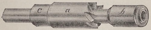 To assemble: 1. Draw back the trigger to its usual place and insert the hammer and locking shoulder (placed together, as when taken out) into the receiver, pressing them forward so as to relieve them from the tension of their springs; then insert the hammer pin, half-cock the hammer, and press back the locking shoulder until it is held by the catch on the locking lever. 2. Insert the lever, breech block and cartridge extractor placed together, put in the fulcrum pin, turn the heads or flanges of the two pins to their places against the binding screw, and turn it up to its place. 3. Open the breech in the usual way, or simply bring the hammer to full cock, when the locking shoulder will be released and[364] the piece ready to operate. The ramrod is held in place by being screwed into the steel on the lower side of the barrel.