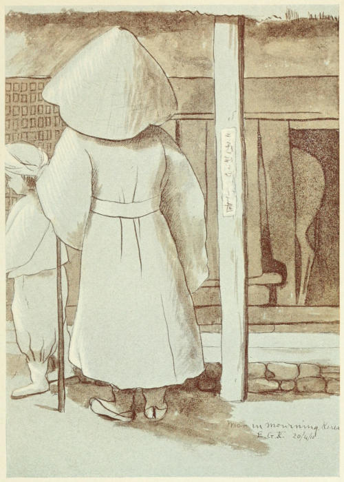 [4] Dr. Arthur Smith, the well-known authority on Chinese customs, told me that the reason for the non-burial of children in China is due to the fact that they are not recognised as an integral part of the family till after marriage. Consequently it is not uncommon to marry them after death, in order to be able to give them an adopted son to perpetuate the family, and to offer worship at the ancestral shrine. In one case of which he knew, the corpse of the bride was carried with great pomp to the village where the bridegroom had lived, and they were both buried together.