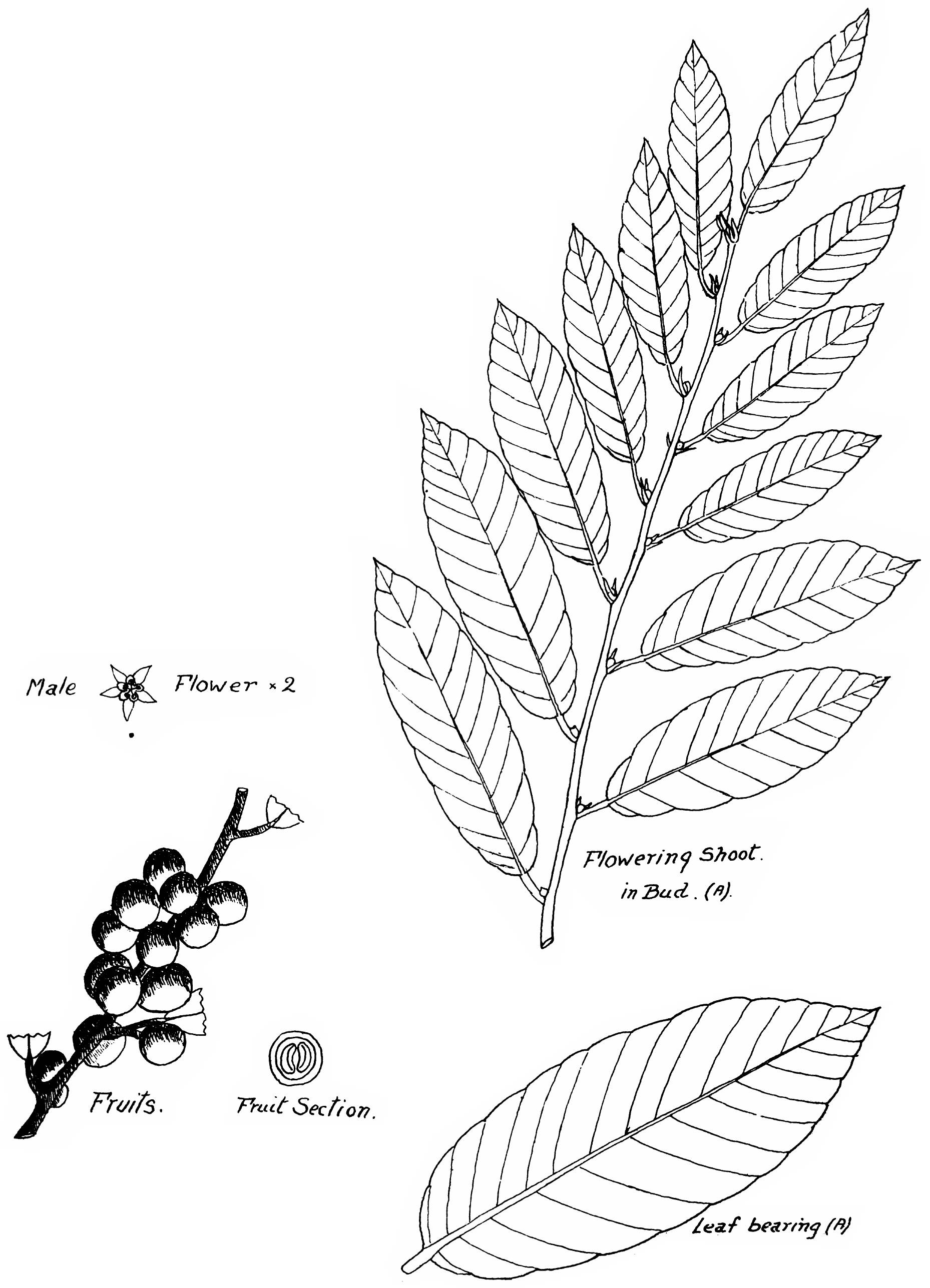 Uses.—Hoe and axe handles are made from the wood which rarely reaches large enough dimensions to provide canoes as it does in other parts of Africa.