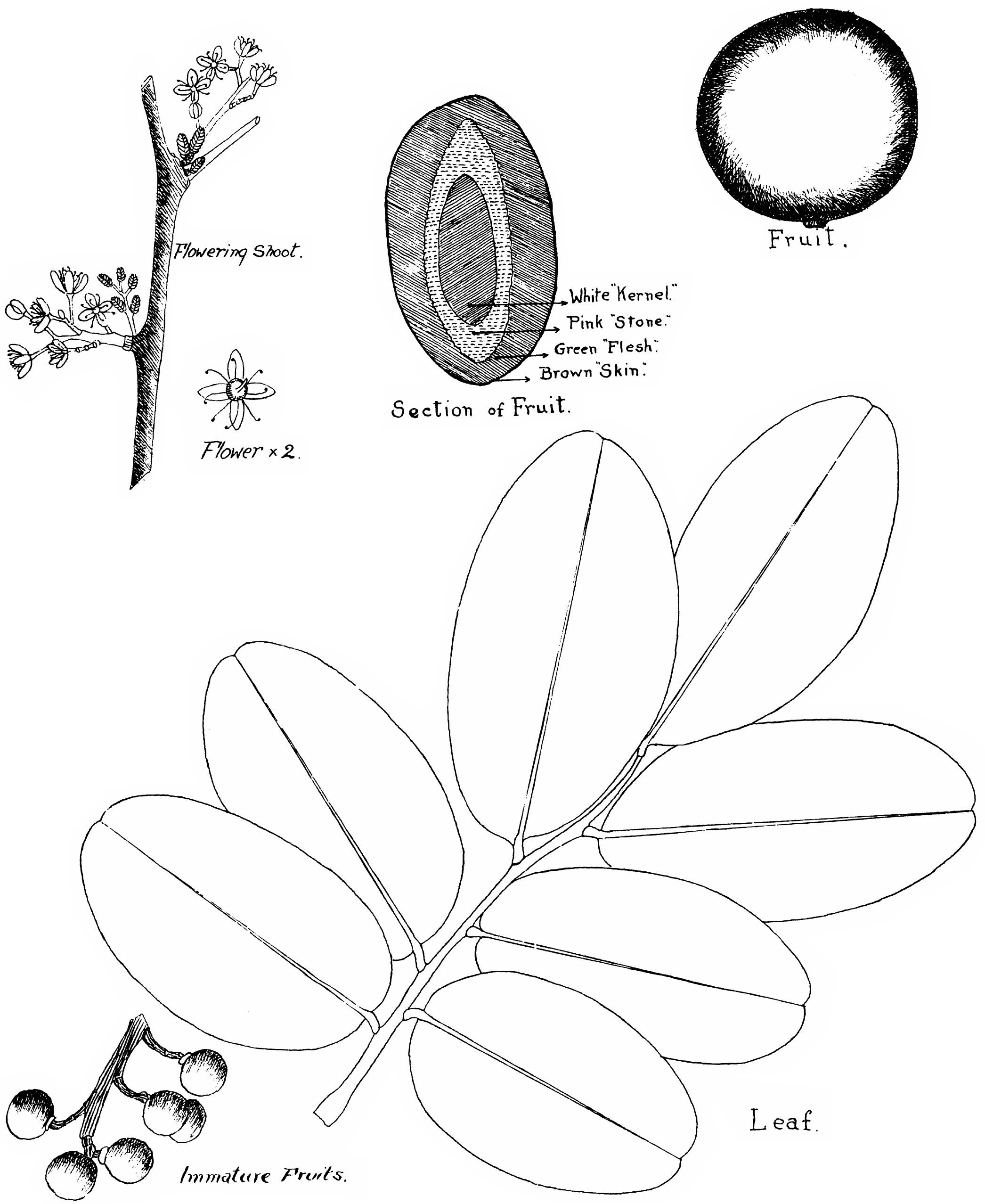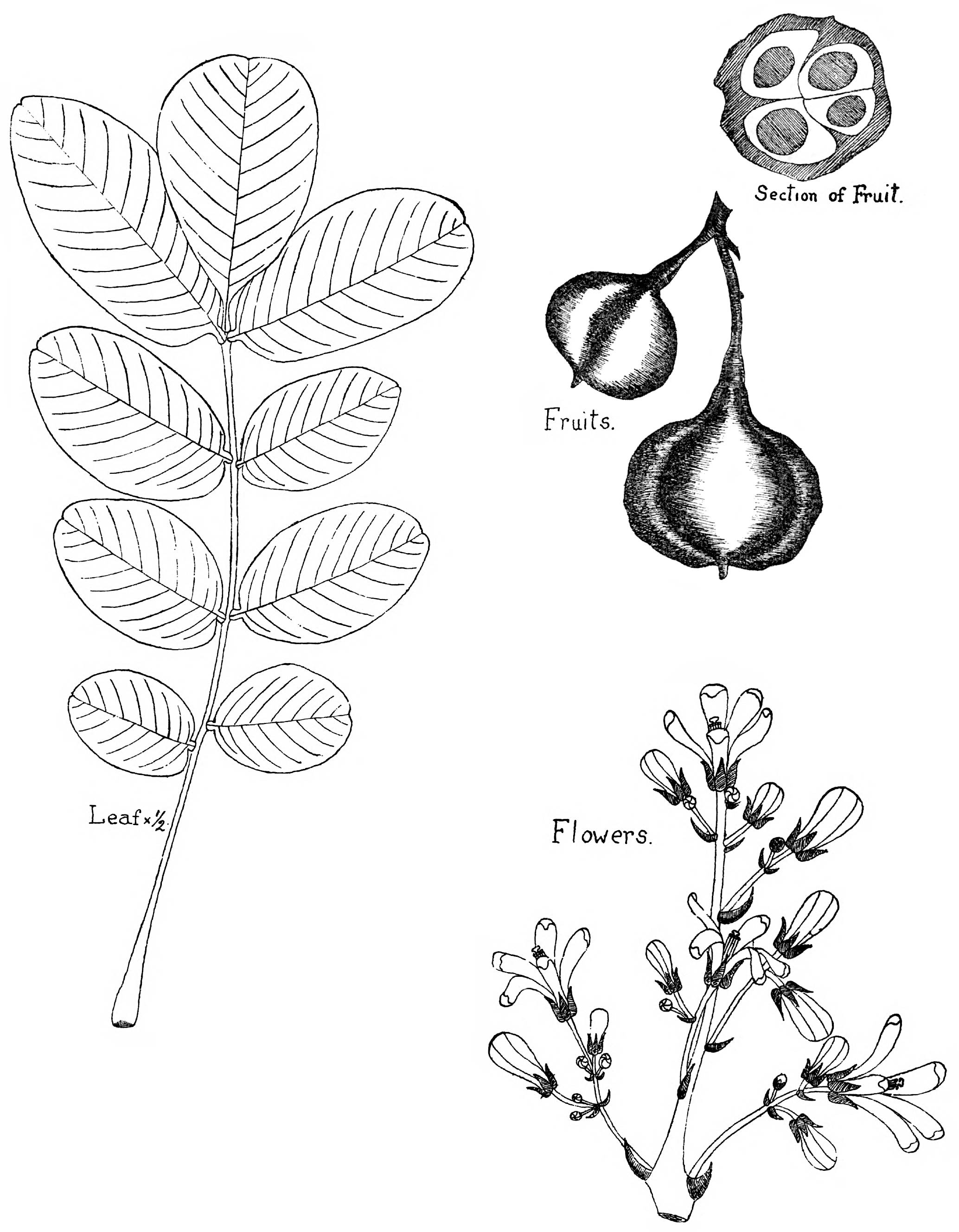 Uses.—Inferior canoes, of the stitched together type are made. The ripe pods are collected and fed to cattle, sheep and goats. The common brown kite nests frequently in its branches in March and April.