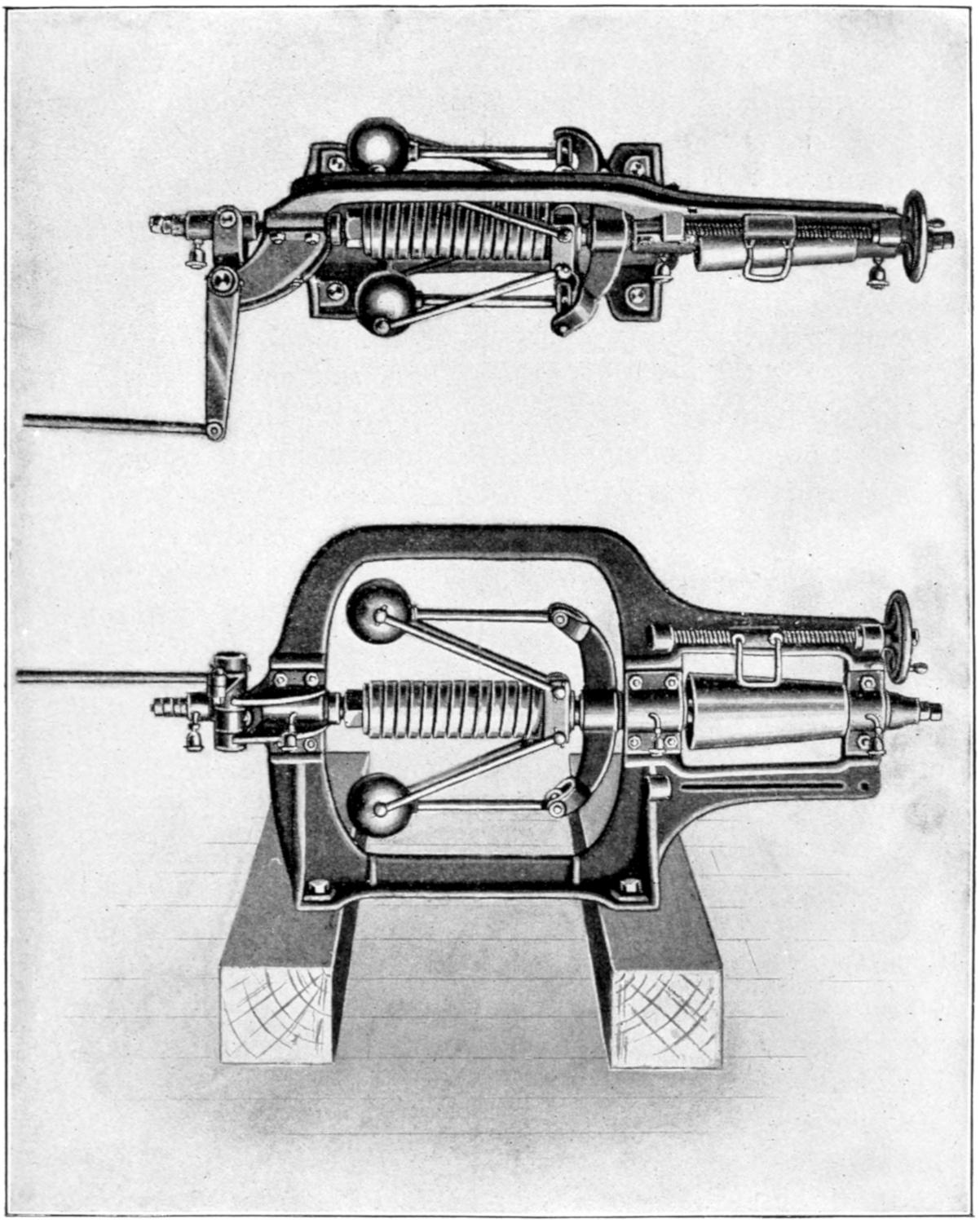 I have a pleasant memory connected with this engine. The silk-mill is located in a very large park, scattered about which are the residences of different members of the family. About twelve years after the engine was built, in company with my wife, I was visiting relatives in Hartford, from which South Manchester is about twelve miles distant. One day we were driven over there with our friends to make a social call. On our arrival I left the party to make a visit to my old engine. The mill seemed to have been changed very much, and I lost my way. Finally I recognized, as I thought, the old engine-room and went in. My engine was not there, but in its place stood another engine, a pair of tandem compounds[319] of much larger dimensions. These had evidently just been erected, as they stood idle. “Oh, dear,” said I to myself, “my engines have been superseded for some reason or other.” While I was indulging in that reflection the engineer came in. I introduced myself and said to him: “I see that my old engines have been supplanted.” “Oh, no,” said he, “your engines are all right; they are running just where they always have been. They have built a new mill twice as large as the old one, and your engines have been giving such satisfaction they have ordered another pair of compounds from the Southwark Foundry, and these are the engines; they have not been started yet, as the mill is not ready for them and won’t be for a month.”