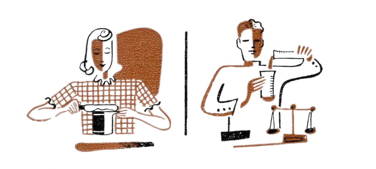 | 1 White Granulated Sugar needs sifting only if lumpy. Spoon lightly into “dry” measuring cup. Level it off with a straight-edged knife. Don’t knock or tap cup. | 2 Brown Sugar. If it’s lumpy, press through coarse sieve; or heat in slow oven; or crush lumps with rolling pin. Pack into “dry” measuring cup just enough to hold its shape. Level off. | 3Confectioners’ Sugar. Press through sieve to remove lumps. Spoon lightly into “dry” measuring cup. Level off with straight-edged knife. Don’t shake cup. |