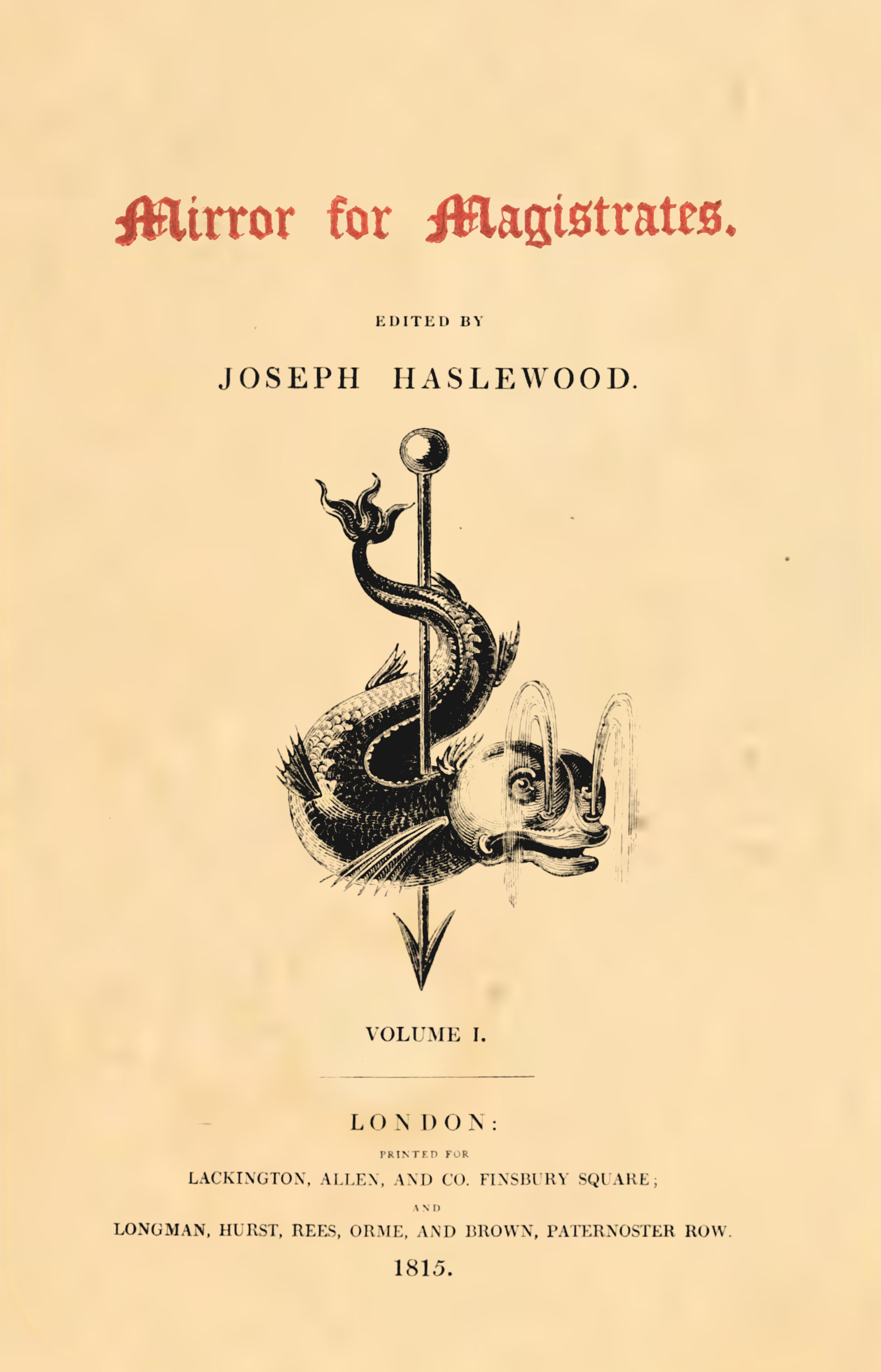 Title: Mirror for Magistrates, Volume 1
