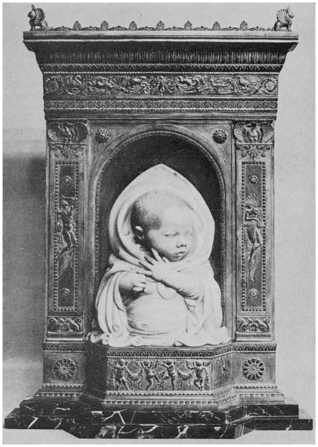 Someone promptly asks what are the rules of relief. But are rules of much use here? Rules of relief are seldom mentioned by the sculptor; never until after they have been patently transgressed. He has of course his standards; he allows to his reliefs some of the privileges of painting, such as perspective and distance, but he does not presume too far with these borrowings, lest his work lose its sculptural style. A relief is largely a matter of innate artistic feeling, as well as of trained taste. And quite as much as a151 work in the round, it tells the personality of its maker. A Saint-Gaudens relief, whether the monumental bronze Shaw, or the marble portrait, slightly under life-size, of Mrs. Stanford White, or the little reduction, “about as large as the hand of a child of twelve years,” made from the bas-relief of the baby Homer, reveals the artist’s temperament, shows his principles and prejudices in art.