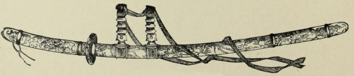 “There were only two, or at most three, such blades in the possession of our troops,” was the reply; “but among the Hōjō adherents there were ten or twelve. I myself have taken one, richly ornamented, which was formerly in the possession of Taka Suke; if you attach any value to it, I should be happy if you would allow me to offer it to you.”