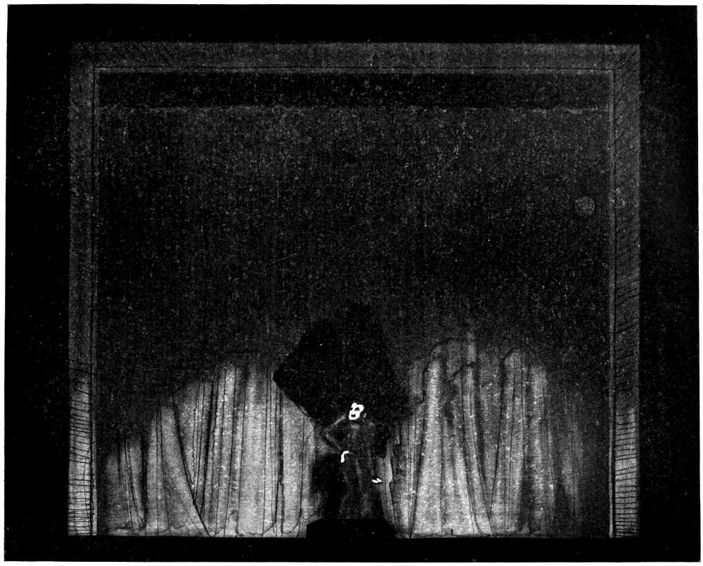 | From Appia’s theories of the ’nineties to the day of projected scenery. Lamps of six thousand candle-power. Color comes under control. The dome no longer a sky; a neutral boundary in Jessner’s Othello, a void in Masse-Mensch, a wall to be painted with light in a Stockholm ballet. Settings projected by Linnebach and Hasait. Light as a dramatic motif. | ||