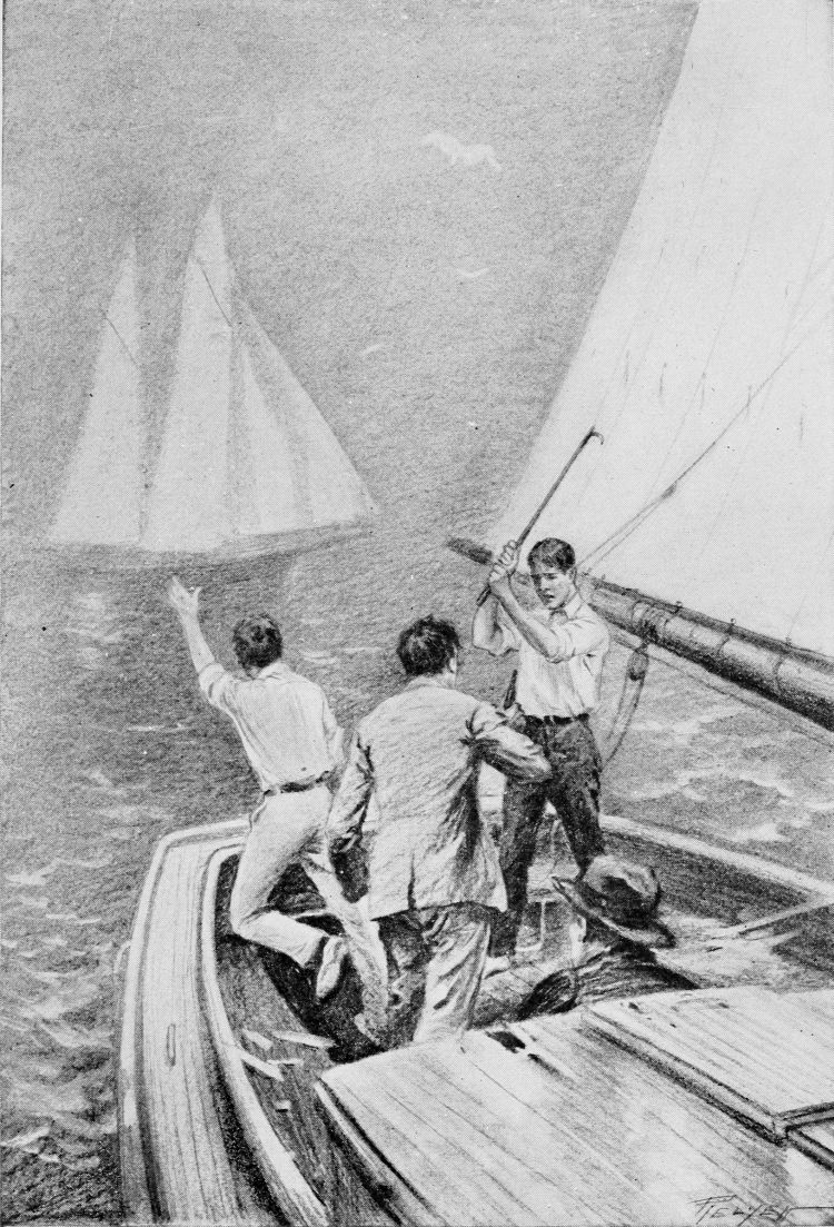 A mile away, Gull Island was fringed with creamy foam, and, farther still, at the tip-end of the Point, the squat stone lighthouse gleamed snowy-white against the clear horizon. Washed and swept by rain and wind, the little Massachusetts fishing-town of Greenport looked bright and clean this May afternoon. The fishing-schooners, some at anchor, some lying snug at the wharves, were drying their sails in the warm sunlight.
