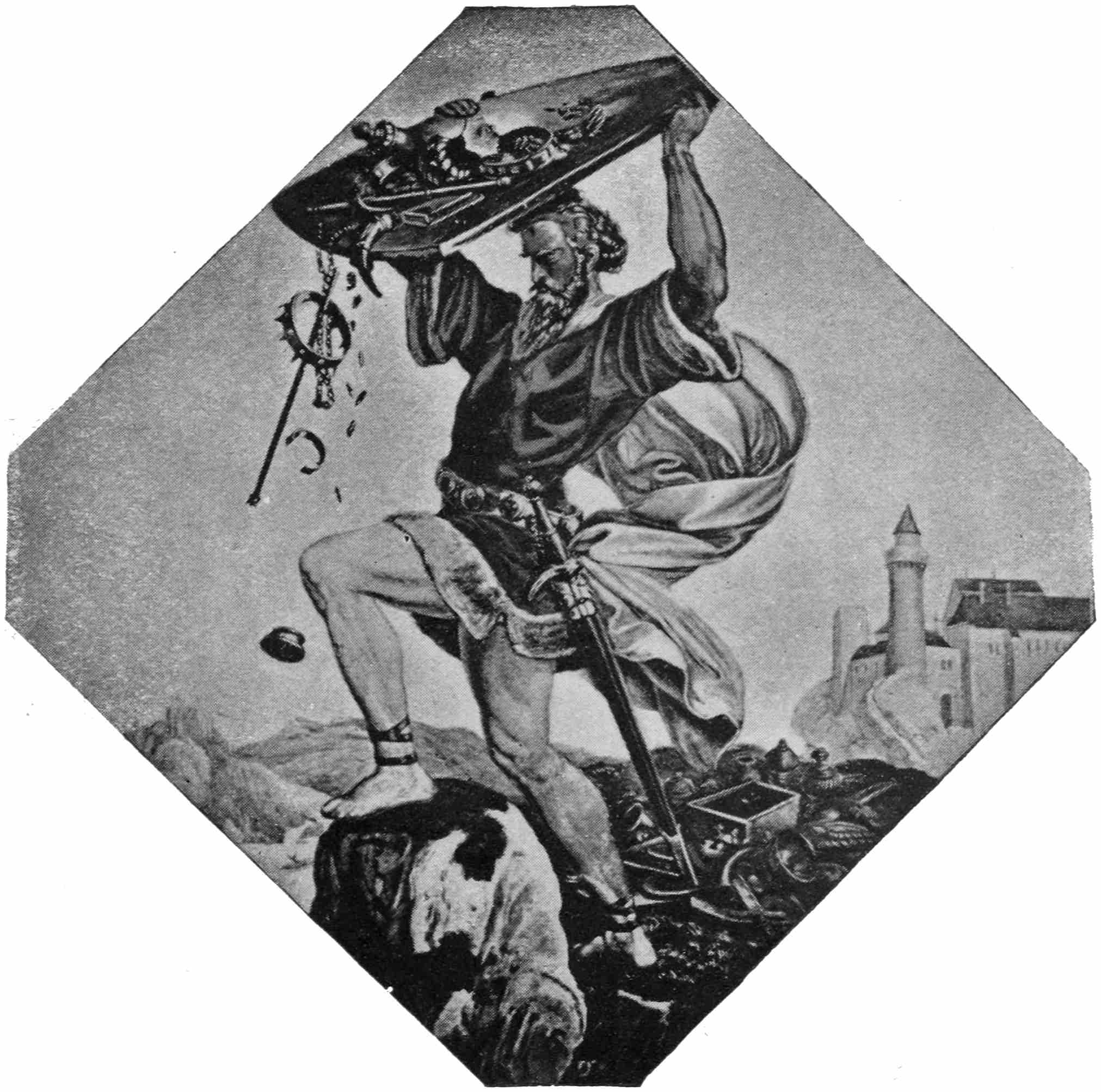 Thor, the Northern thunder-god, also has many points of resemblance with Jupiter. He bears the hammer Miölnir, the Northern emblem of the deadly thunderbolt, and, like Jupiter, uses it freely when warring against the giants. In his rapid growth Thor resembles Mercury, for while the former playfully tosses several loads of ox hides about a few hours after his birth, the latter steals Apollo’s oxen before he is one day old. In physical strength Thor resembles Hercules, who also gave early proofs of uncommon vigor by strangling the serpents sent to slay him in his cradle, and who delighted, later on, in attacking and conquering giants and monsters. Hercules became a woman and took to spinning to please Omphale, the Lydian queen, and Thor assumed a woman’s apparel to visit Thrym and recover his hammer, which had been buried nine rasts underground. The hammer, his principal attribute, was used for many sacred purposes. It consecrated the funeral pyre and the marriage rite, and boundary stakes driven in by a hammer were considered as sacred among Northern nations as the Hermæ or statues of Mercury, whose removal was punished by death.