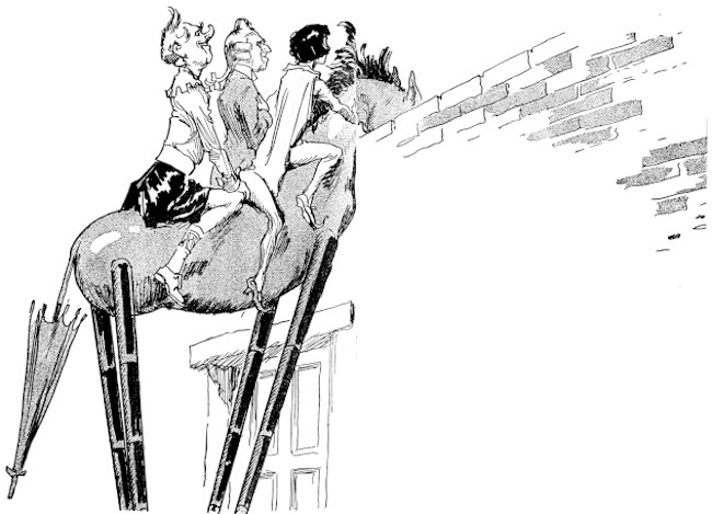 "They still think it's Quiberon," snorted High Boy at last. "Wait here, I'll look in and see whether everything's all right." Stretching up till he was on a level with one of the sky lights, High Boy butted out the sapphire pane and stuck his head through the opening.