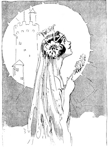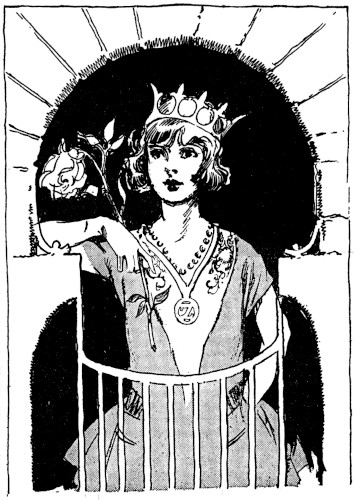 Racing around in a frenzied circle, Akbad began to tear out handfuls of his hair and cast it upon the floor. His loud outcries aroused the unconscious monarch. Rubbing the lump that the sapphire clock had raised upon his forehead, Cheeriobed rose and unsteadily made his way to the window. The black sentence was growing fainter but was still legible. After reading it twice, the unhappy monarch groaned heavily and dropped his head upon the sapphire sill. "Where are we to find a mortal maiden and even if we do find one, who would condemn her to such a fate?" mourned the King.