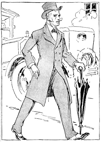 "Now for an umbrella," murmured the stone gentleman determinedly. "I must have an umbrella. What I've suffered all these years, rain and snow. Ah—hh." Catching sight of an old lady hurrying down one of the cinder paths, he called loudly. "Stop! Stop! Give me that umbrella!" For some seconds the old lady who was quite deaf paid no attention, but when, looking over her shoulder, she saw a gray stone gentleman in a frock coat pounding after her, waving both arms, she picked up her skirts, jumped over a little hedge and fell face down among the pansies. Without feeling at all sorry, or stopping to help her to her feet, the Public Benefactor took the umbrella from her hand. Opening it with a little grunt of satisfaction and holding it over his head as he had seen other people do, he stepped carelessly over the old lady and continued down the cinder path. "I've always wanted to be like other people," mused the statue, striding along contentedly, "and now, I am. But I wonder why I never did this before?"
