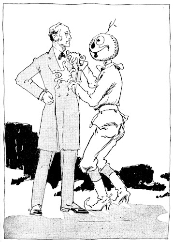 "I'm not going, I'm coming," announced the Public Benefactor sulkily. The experiences of the past few hours had made him suspicious of every place and everybody. The Scarecrow considered his answer for a few seconds in silence, then stepping closer inquired earnestly, "Tell me, are you a person?"