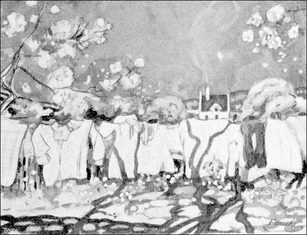 C’était le temps des derniers repiquages. Jean Fauche, au petit jour, descendait jusqu’à la marine. Il humait un instant la senteur musquée du fleuve, bourrait sa pipe à long tuyau de merisier, heureux, détendu à la fraîcheur matinale. La chemise bouffante au dos, en braies larges de terrassier, il prenait ensuite son plantoir et fonçait de petits trous où il repiquait ses semis levés. C’était la petite famille des fleurs de l’été, les giroflées, les pensées, les phlox, les résédas, les balsamines, les essences à bonnes odeurs comme des âmes de douces aïeules fleurant dans les armoires. Jean Fauche se rappelait la maison d’enfance: la grand’mère, le temps venu, s’en allait cueillir au jardin la marjolaine, le romarin, la lavande, le réséda. Les tiroirs en restaient parfumés jusqu’à l’an suivant.