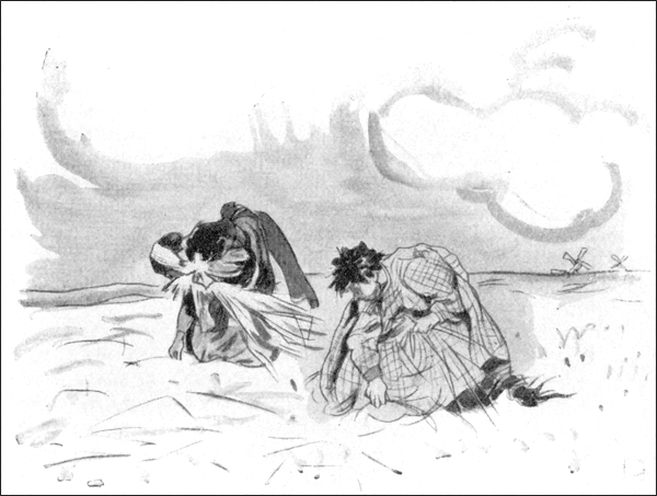 Un jour qu’il était dans le charril, fixant avec des clous la bande d’une roue de charrette, il entendit un grand vacarme dans la cour. Toute la poulaille apeurée battait de l’aile et fuyait devant le piaffement de Carlintje, la petite jument de Roselei, entrée en tempête avec sa maîtresse sans selle sur son dos. Elle lâchait la bride, le cheval s’arrêtait net et les cheveux dénoués et flottants, elle sautait bas, retombait sur la pointe de ses bottines, en petite amazone sauvage qu’elle était. Sa jument était à la fois pour elle un jeu, une camaraderie, une habitude, la chose vivante qu’elle sortait de l’écurie quand elle allait aux fermes visiter ses malades ou simplement 116 qu’il lui passait la fantaisie de faire un petit temps de galop.
