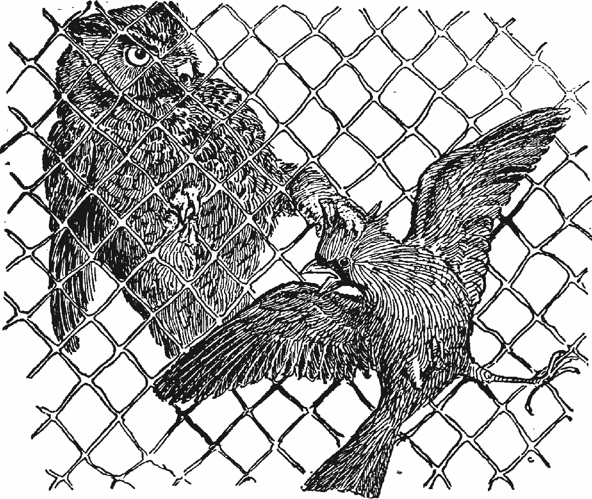 We began to inquire among our friends who would like a nice, affectionate pair of owls? There seemed no great eagerness on the part of any one to(23) take the pets we so much valued. Plans for their future worried me so much that at last I said to my sister, “We will take them East with us.”